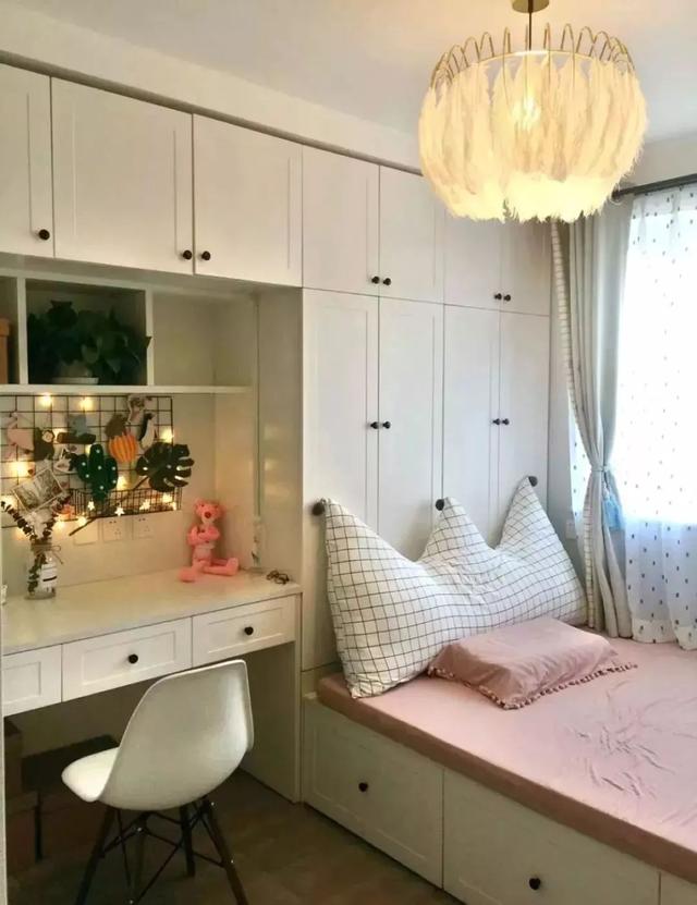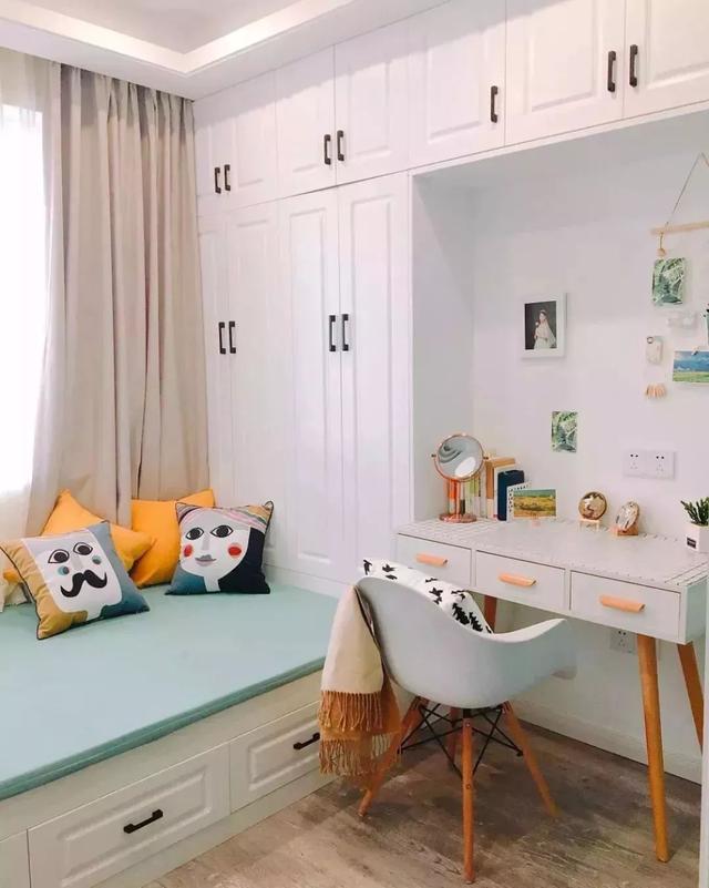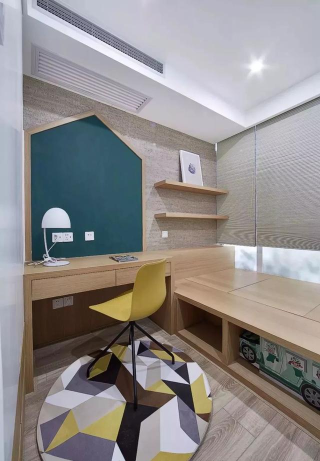 在這個書桌前方的墻面裝黑板墻或則軟木板,讓空間更加溫馨文藝。