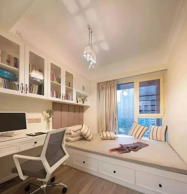 如果空間夠大,而且懶得搞衛生,那么就全都裝成吊柜,把書籍之類的東西放進去后,可以長時間不動也不會臟。