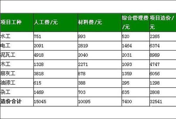 下面的裝修費用清單主要包含四部分。分別是裝修人工費、裝修輔材、管理費、稅點。