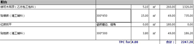 陽臺預算費用為2247元