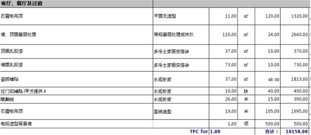 客廳總造價10158元