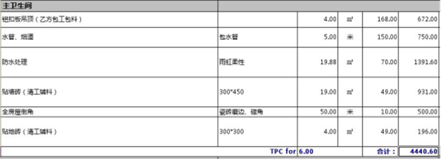 主衛生間總預算為4440元
