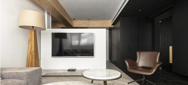 老時(shí)代的房子裝修設(shè)計(jì),不僅梁低,而就算格局方正,但門(mén)開(kāi)在正中央,也少了玄關(guān)感,客廳深度也不夠。于是,在納入玄關(guān)需求的同時(shí),又不至于碎化空間的線條,巧妙將客廳方位轉(zhuǎn)向,再借異材質(zhì)和色差分界場(chǎng)域,形成黑白對(duì)比的風(fēng)格語(yǔ)匯。