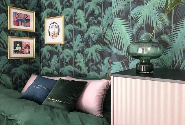 客廳更加大膽的運用起各種深淺不一的綠色,通過小塊黃銅元素家具和不同顏色的抱枕掛毯來協(xié)調(diào),讓整個綠色空間更富有層次感。