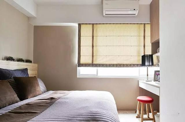 對于主臥的設計依舊是簡單舒適最好,墻面是非常淺淡的咖啡色,突出墻面的白色橫梁,恰好可以當做吊頂,化解了過于單調的尷尬。