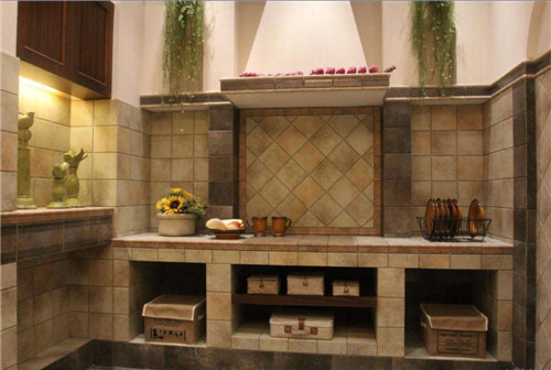 將地板磚制成櫥柜,對于屋主的品味、房屋的層高以及烹飪區范圍大小均十分挑剔,比方說層高在2.7m以下的,廚房面積不足7平的戶型,不宜安裝這類櫥柜,因此以地板磚貼面的整體廚柜,較常見于別墅住宅中的西式廚房里。