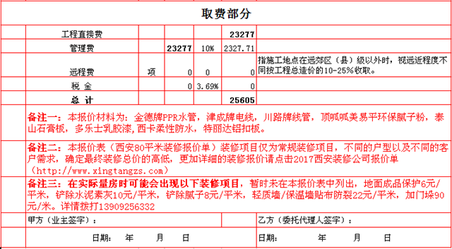西安80平裝修多少錢——取費部分