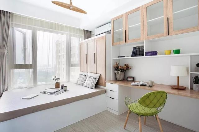 次臥室目前是預留出來的房間,考慮到儲物做了榻榻米床側面做了臨時的衣柜,還有書桌書柜。親戚客人可以住在這個房間,多一個書桌也方便使用一些。