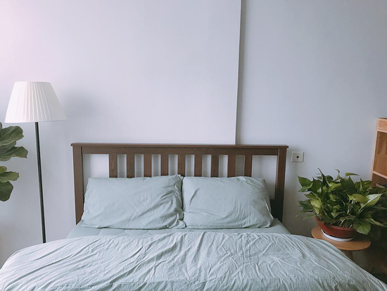 把床套、桌布等布藝換新,買兩個薄荷綠的抱枕套,鋪上自己新買的四件套,換上網紅仙女拍照神器白色窗簾,整體一下明亮了許多。