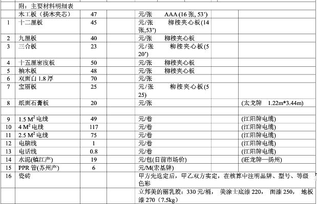 太原裝修多少錢——水電輔材及其他報價清單