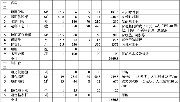 太原裝修多少錢——客房、前陽臺裝修報價清單