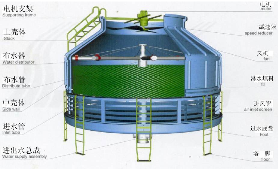 3、冷卻塔 8T-100T 標(biāo)準(zhǔn)圓形冷卻塔/冷水塔/玻璃鋼冷卻塔