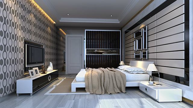 (4)若是使用暗冷色系的話,能夠營造出一種很神秘的氣氛。當然具體怎么選擇色彩,還要視地板與墻的色彩與材質來決定,注意不宜過于沉重,否則很容易令人產生一種很壓迫的感覺。