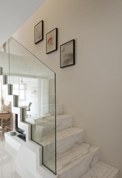 玻璃扶手更適合現代的年輕人。透明的質感,會讓樓梯顯得簡約大氣又不失時尚味道。視覺上還能增大開闊感,所以很多辦公區和商場都能看到這種扶手。不過選材一定要注意選擇防爆、防裂玻璃。