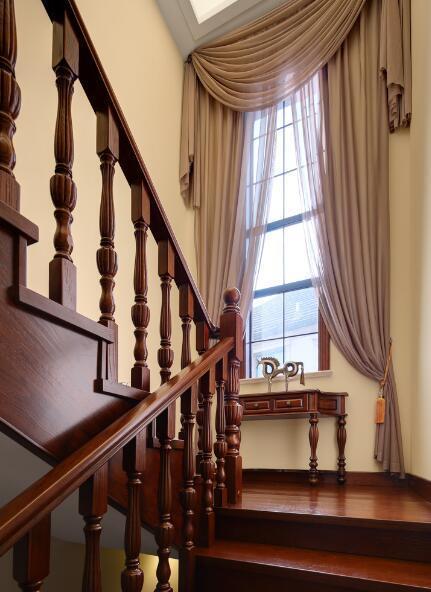 木質扶手是最常見的,如果家里裝了地板,那么材質和顏色更好搭配,施工也簡單的多。整體效果大氣、質感厚重,觸摸起來有溫暖感。不過后期養護需要多費心思才行。