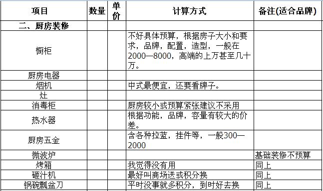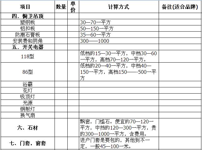 4.徐州裝修預算清單:廚衛吊頂預算清單