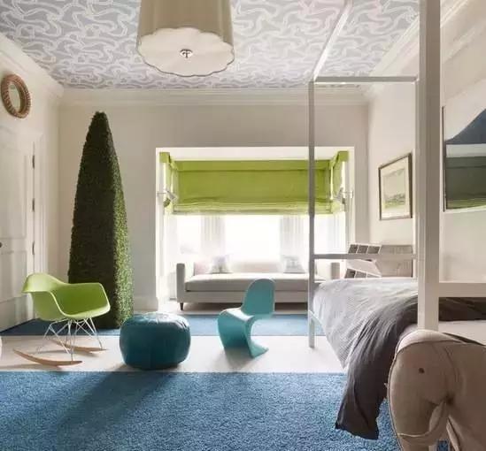 除了石膏圖案,還可以用墻紙裝飾屋頂哦,非常好看。
