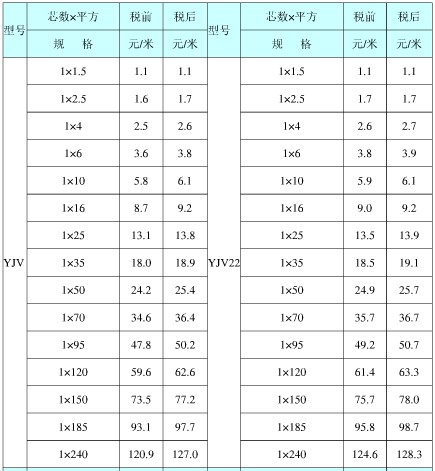 yjv電纜價(jià)格由其型號的不同而有所不同,不同的規(guī)格也有不一樣的價(jià)格,分為稅前和稅后的價(jià)格,小編為大家提供了部分yjv電纜價(jià)格作為參考: