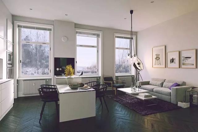 這間小型客廳餐廳組合,展示了現代和極簡主義并不是設計這樣一個空間的唯一方式。納維亞風格的椅子,具有古董風格的燈和人字形圖案的地板,盡管它的面積不大,但這個空間感覺很豪華。