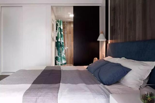 灰白的格子床品,搭配深藍靠墊和床頭,一個文藝又溫馨的休息空間展現出來。