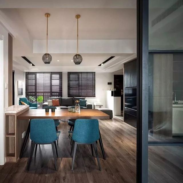 這套僅有80㎡的小房子,設計師在設計格局的時候打破了一成不變的設計,通過開闊的格局,為小家庭帶來了一個寬敞的家庭互動區;同時給玻璃窗戶安裝了竹藝百葉窗簾,確保了房間的采光,同時又可以隔絕一定的灰塵。