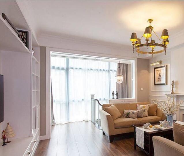 客廳,整體上布置的很簡(jiǎn)潔,因?yàn)榍懊骊柵_(tái)和樓梯的緣故,沙發(fā)和茶幾就側(cè)著擺放,就是看電視累一點(diǎn),要轉(zhuǎn)著頭看。所謂的沙發(fā)墻已經(jīng)布置成了壁爐。