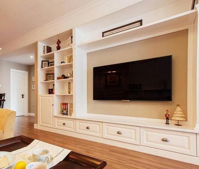 電視墻是最大氣,最吸睛的,底部刷暖色墻漆,邊緣打上回字形電視柜,布置了很多開放式的隔板柜,整體白色也顯得干凈,就是以后打掃衛(wèi)生要勤勞點(diǎn)。