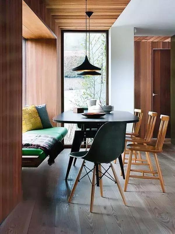飄窗面積大,采光效果好。會客型飄窗可以設計在客廳、餐廳這些地方,沿飄窗放上一排小墊子,客人圍著休閑、游戲,再愜意不過了,連椅子都省了。這是小戶型十分喜歡的設計了,節省空間又不失美觀設計感。