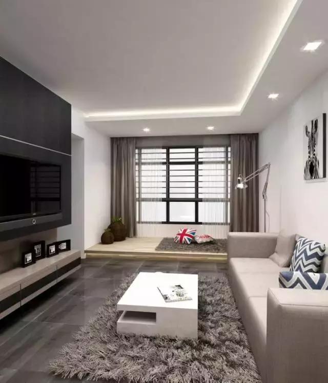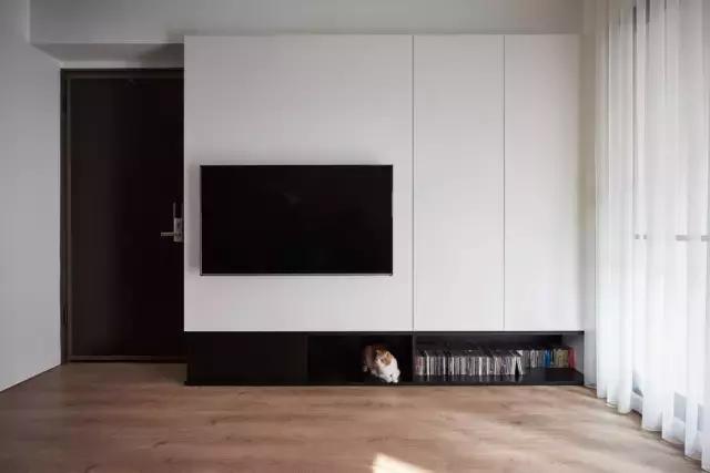 鼓鼓還是比較推崇下圖這種簡潔的電視背景墻,不看電視的時候,電視與墻面硬裝結合為一體,成為空間的裝飾,看的時候它便是視覺的焦點。