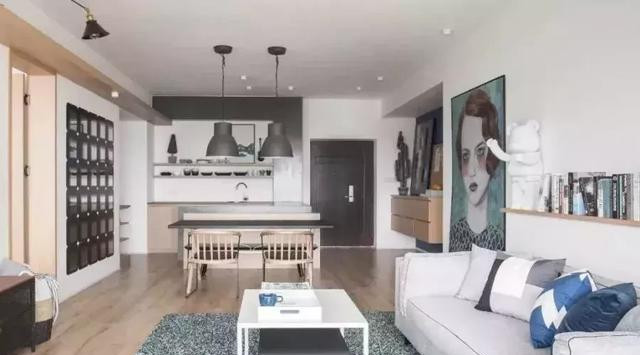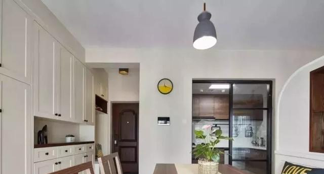 ▲這也是比較典型的一個穿堂剎戶型,進門如果沒有做隔板的話是直通到陽臺的窗戶的,但是在玄關部分做了一個立柜,巧妙的緩沖了視覺效果,形成了一個小小的玄關空間,美觀又具有強大的收納效果,不失為一個好的解決辦法。