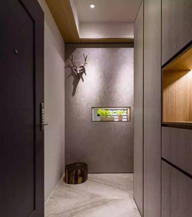 ▲ 這個小戶型原本也是進門對陽臺,一個書柜做隔斷,中間鏤空放了兩盆綠植,整個立面既解決風水問題,同時也非常實用,右邊做了鞋柜相結合,裝修之后就間接打造成了我們前面所提到的普通型玄關。