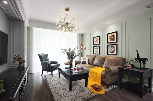 客廳,采光充足,淺色硬裝下搭配深色的美式家具,別有一番復(fù)古韻味。