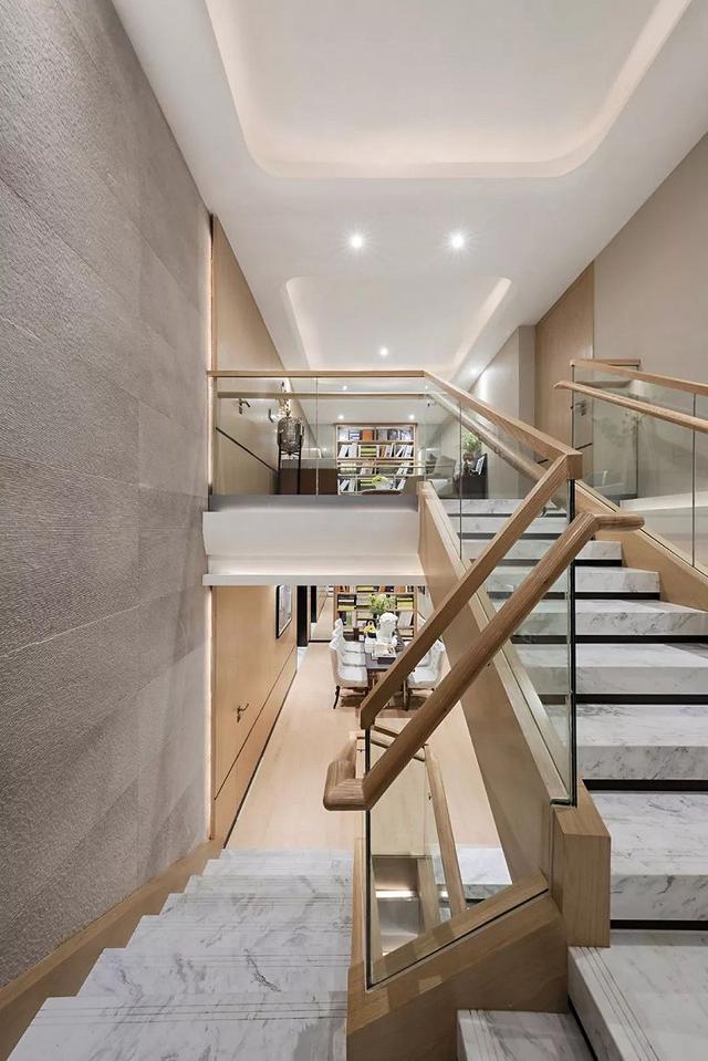 以游艇、浪花為靈感,室內如潔白純凈的游艇空間,自然下垂的水晶吊燈光彩奪目,串聯在一起的圓形彌漫出精妙絕倫的靈動氣息。流暢的線條縮小了空間隨樓層增高而縮小的問題,靈活布局讓日常生活也充滿了樂趣。