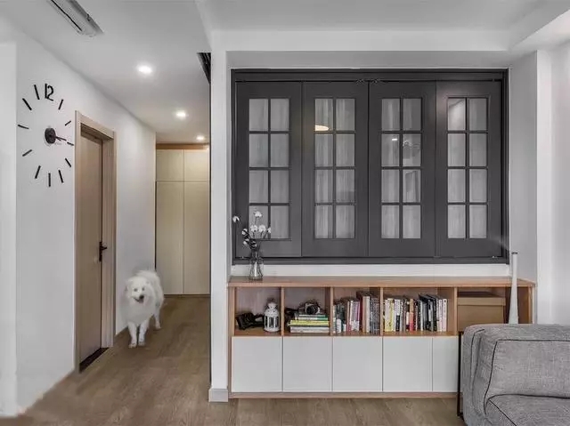 一個窗戶下面設計了幾個隔板,看似簡單,但是可以收納自己喜歡的書,同時對整個客廳也是起到一定的裝飾作用。