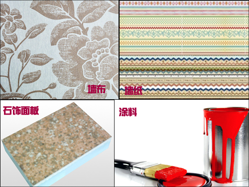 內墻裝飾材料又可分為墻面涂料、墻紙、裝飾板、墻布、石飾面板、 墻面磚等種類。