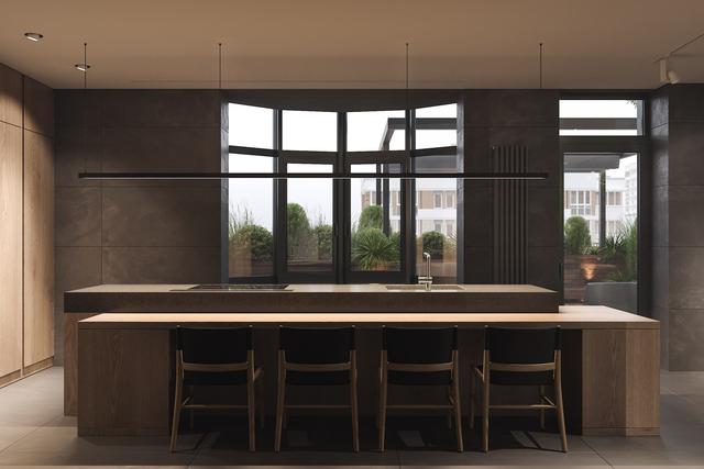 這個舒適的公寓裝修設計帶有室內綠色空間,是由Bezmirno建筑事務所的天才設計和視覺化的。320平方米的住宅分為兩個主要部分:第一部分是社交區,包括廚房、餐廳、客廳、家庭辦公室和茶室。住宅的第二部分擁有私人空間,包括主臥室、兩個兒童房間和獨立的浴室。整個兩個區域的裝飾都是平滑的暖色調,因此沒有粗糙的邊界。自然材料的使用使這個項目對環境負責,經過深思熟慮的選擇產生了一個精致和大氣的極簡主義室內空間。