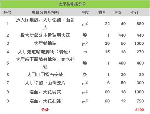 這樣算下來,這套40平米的房子在裝修上的花費是:客廳花去5200元,臥室的裝修報價為3800元,廚房用了6600元,衛生的裝修價格為4100元,綜合部分的裝修費用是11000元,總共的花費是30700元。所以這樣一套40平米的小戶型房子用3萬元也能夠輕松搞定,而且也相當的漂亮。