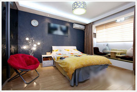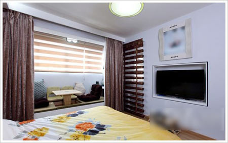 小戶型裝修實例:看看臥室,臥室既是休息的地方也是娛樂的地方。因為沒有客廳,所以臥室的功能很多。