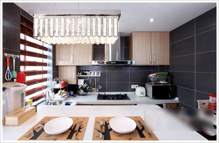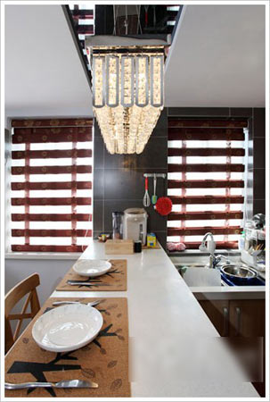 小戶型裝修實例:這盞吊燈看上去很奢華吧!盡管地方不大,但也不能看上太小家子氣,于是在設計師的指導下,特地配了這么一盞大氣十足的吊燈,當然也下了不少重本哦!