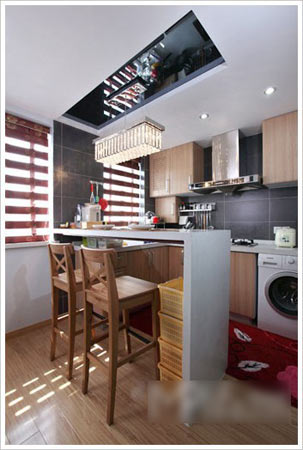 小戶型裝修實例:給吧臺來個正面,地方倒是很大,兩個人用已經足夠了。