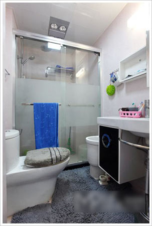 小戶型裝修實例:最后就來看看衛生間吧!做淋浴房節省空間,還有就是這種掛墻式的洗漱臺,也是節省空間的好方法啊!