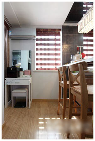 小戶型裝修實例:設計師真是不遺漏任何小角落,在過道靠近廚房的某個角落便是我化妝使用的梳妝臺了。