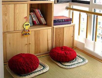 墻邊幾個自由組合搭配的小儲物柜,實用美觀,不但為空間的收納提供了便利,與榻榻米搭配起來也顯得非常有格調。涼臺選擇采用日式榻榻米風格著實是個明智之舉,偶爾翻書品茶,偶爾小睡片刻,精致而悠閑的生活盡在這里。