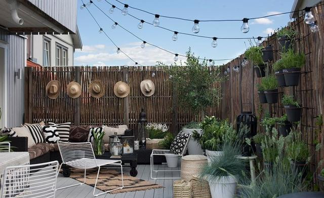 在小小的后院里,你所能做的就是裝飾一下。使用_Accent_拋擲枕頭和小凳子或可兼作咖啡桌的pouf創建一個時尚的座位區。試著在家具和裝飾品之間找到合適的平衡點,不要讓你的小后院不堪重負。