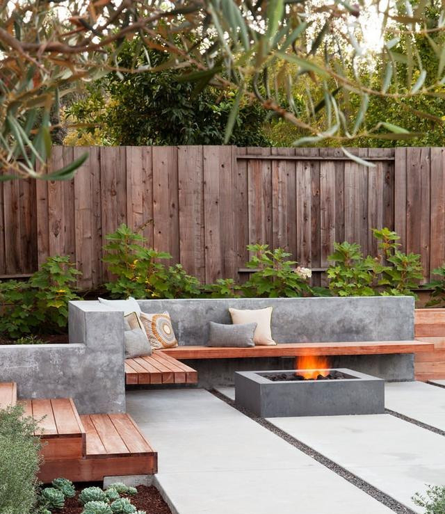 _混凝土_與木材的結合是__現代后院的完美選擇。從墻到火坑,混凝土很容易成型。很時尚,穿著也不錯。