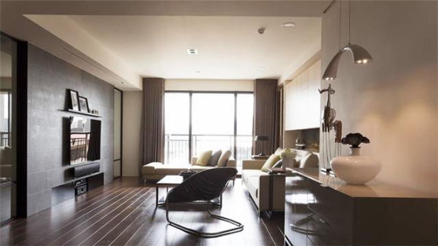 客廳電視墻則一體兩用,背向可作為書房書柜使用,旁側(cè)隱藏了軌道門,透過清玻璃的穿透特性,讓客廳與書房空間感彼此加乘,展現(xiàn)出更加放大的廳區(qū)范圍。
