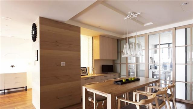 餐廳則采用了吊燈設(shè)計(jì),功能收納柜的打造這整個餐廳的氛圍豐富起來,在餐廳上擺上自己喜歡的擺件,品質(zhì)感油然而生。