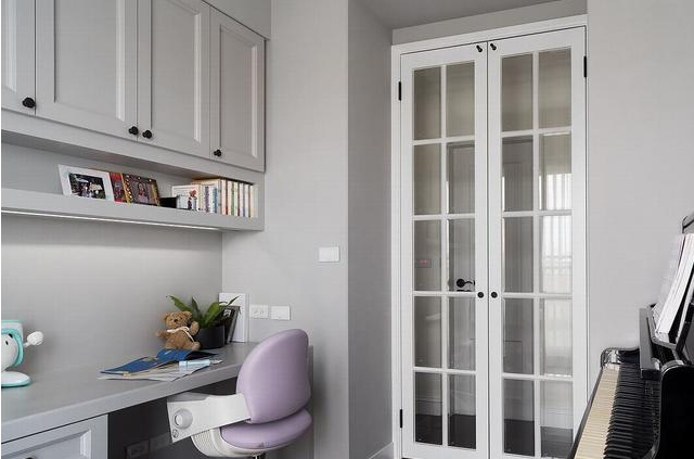 因為屋主回家后愛玩網(wǎng)絡(luò)游戲,所以在臥室設(shè)計了一個書桌臺,這樣在有限的空間內(nèi)即不影響孩子晚上做作業(yè),又能整合出自己的娛樂時間。