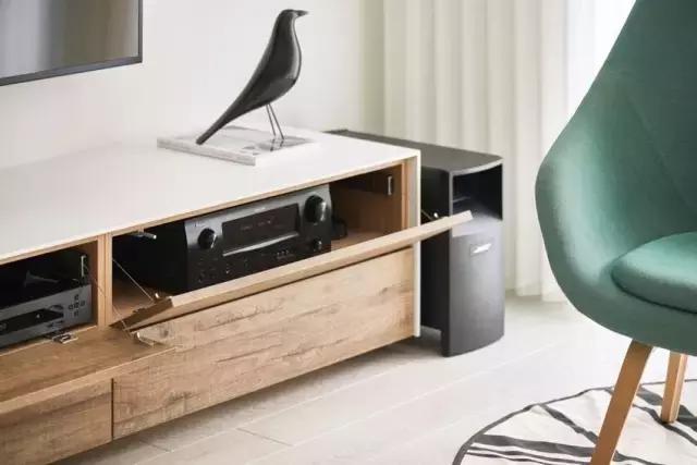 次臥里一個大大的定制衣柜,中間是抽屜,抽屜上方做空設計。
