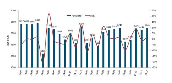 2015年6區(qū)成交價(jià)格觸底回穩(wěn)